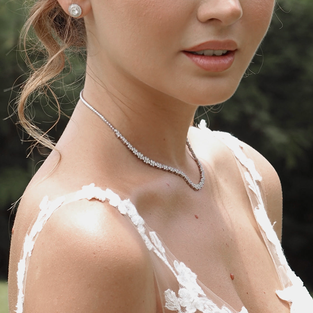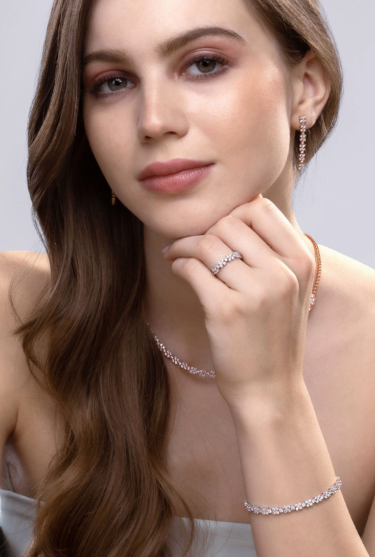Cubic Zirconia (CZ) simulates the beauty of a diamond but differs drastically in its quality and value. Your Try-at-Home replica jewelry is made with CZ to mimic the beauty of real jewelry at a fraction of a cost so you can feel confident in knowing what your real Verlas jewelry will look like.