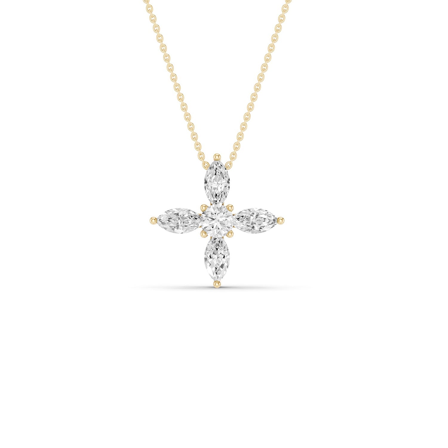 Discover the captivating elegance of the Verlas Alyssa Eternal Marquise Necklace, where sustainable luxury meets timeless design. Expertly crafted, this exquisite diamond necklace features marquise-cut lab-grown diamonds arranged in a graceful X-shaped pattern. At its heart, a brilliant round lab-grown diamond adds radiant balance and sparkle. A seamless fusion of sophistication and conscious craftsmanship, this pendant is perfect for those who cherish beauty with purpose.