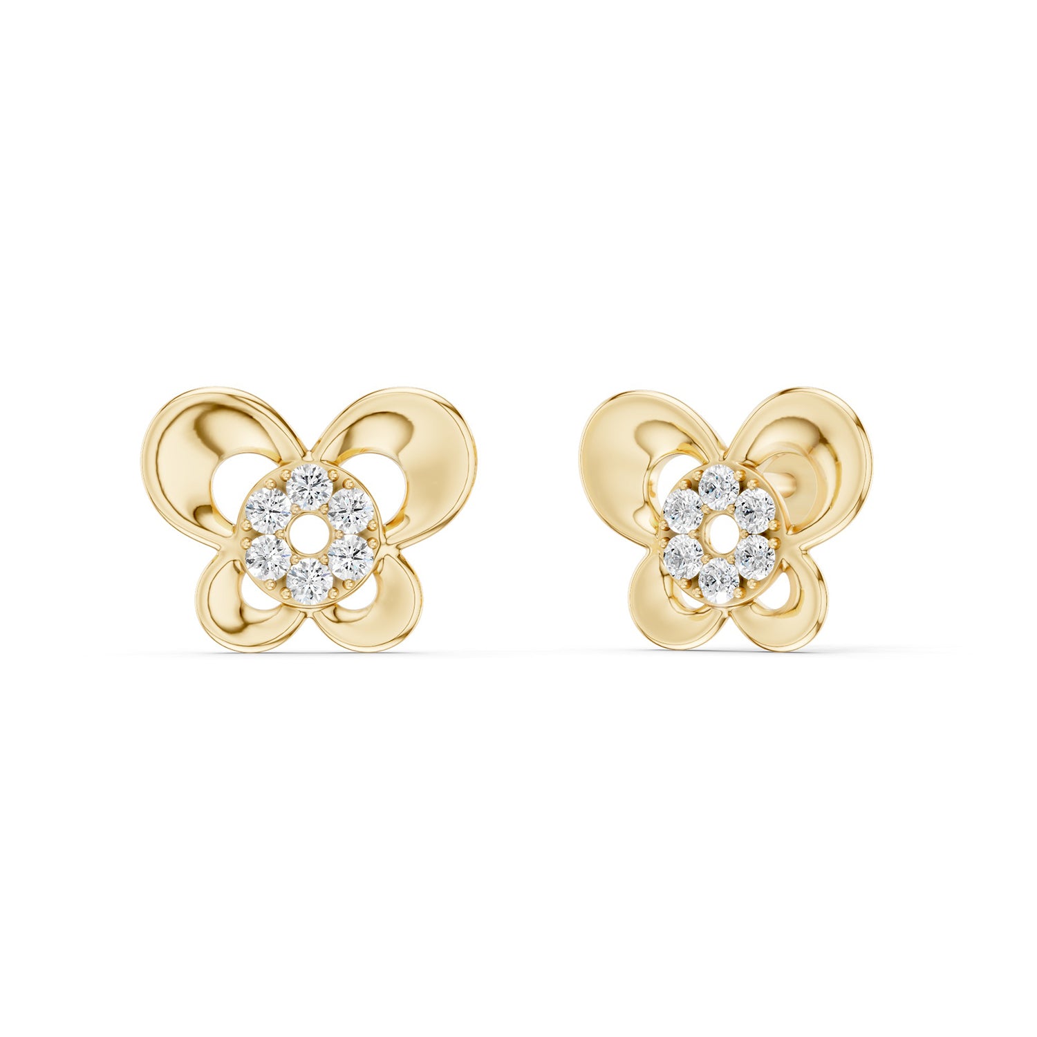 Delicate yet radiant, the Halo Cluster Butterfly Studs showcase a sculpted, graceful butterfly silhouette, creating a refined balance of movement, symmetry, and modern fine-jewelry design. At the center, a brilliant halo cluster of round-cut diamonds enhances sparkle and depth, thoughtfully arranged to create the illusion of a larger, glowing centerpiece. An open gallery at the back ensures lightness and comfort, finished with a secure screw-back post for everyday wearability. It is perfect for daily styling, meaningful gifting, or stacking with other studs.
