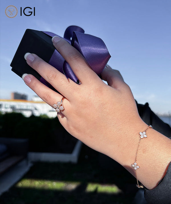 Clarity, one of the “Four C’s,” measures a diamond’s naturally-occuring imperfections (also called ‘inclusions’ or ‘flaws.’). Per gemological standards, diamond clarities are categorized as Flawless (F), Internally Flawless (IF), Very Very Slightly included (VVS), Very Slightly included (VS) and Included (I). Under 10x magnification, Flawless diamonds do not show any inclusions. Higher-clarity diamonds are rarer and pricier. However, many types of inclusions are invisible even to the naked eye, not to mention they give natural diamonds their unique character. Verlas strikes a balance between clarity and price point which is why we offer hand-cut VS and SI clarity diamonds certified by IGI. You can always contact Verlas Concierge for a different diamond clarity on your favorite Verlas designs.