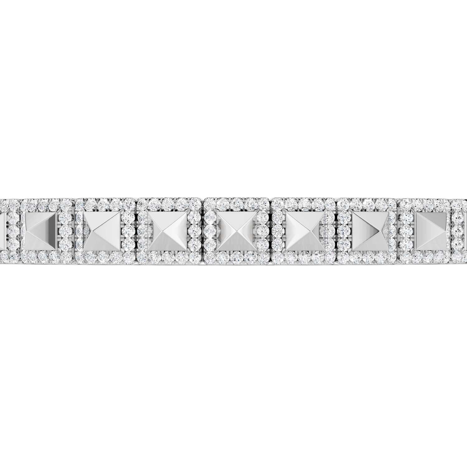 Shop the Zenyth Pyramid Luxe Geometric Bangle. This stunning diamond bangle showcases a row of three-dimensional pyramids in square-shaped settings along the top half, each adorned with lab-grown diamonds for a sharp and contemporary look. Loved by Men & Women alike . . . Read More