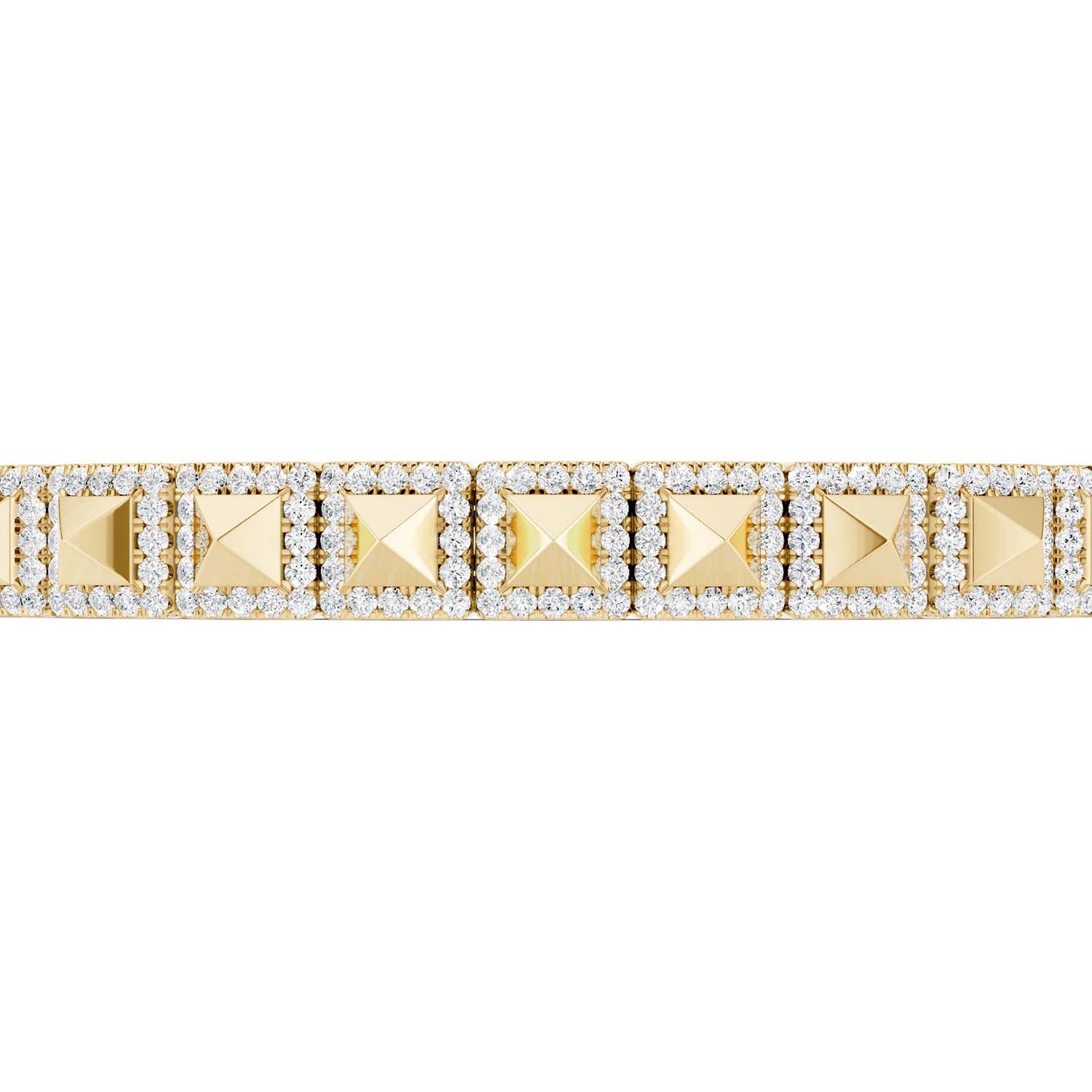 Shop the Zenyth Pyramid Luxe Geometric Bangle. This stunning diamond bangle showcases a row of three-dimensional pyramids in square-shaped settings along the top half, each adorned with lab-grown diamonds for a sharp and contemporary look. Loved by Men & Women alike . . . Read More
